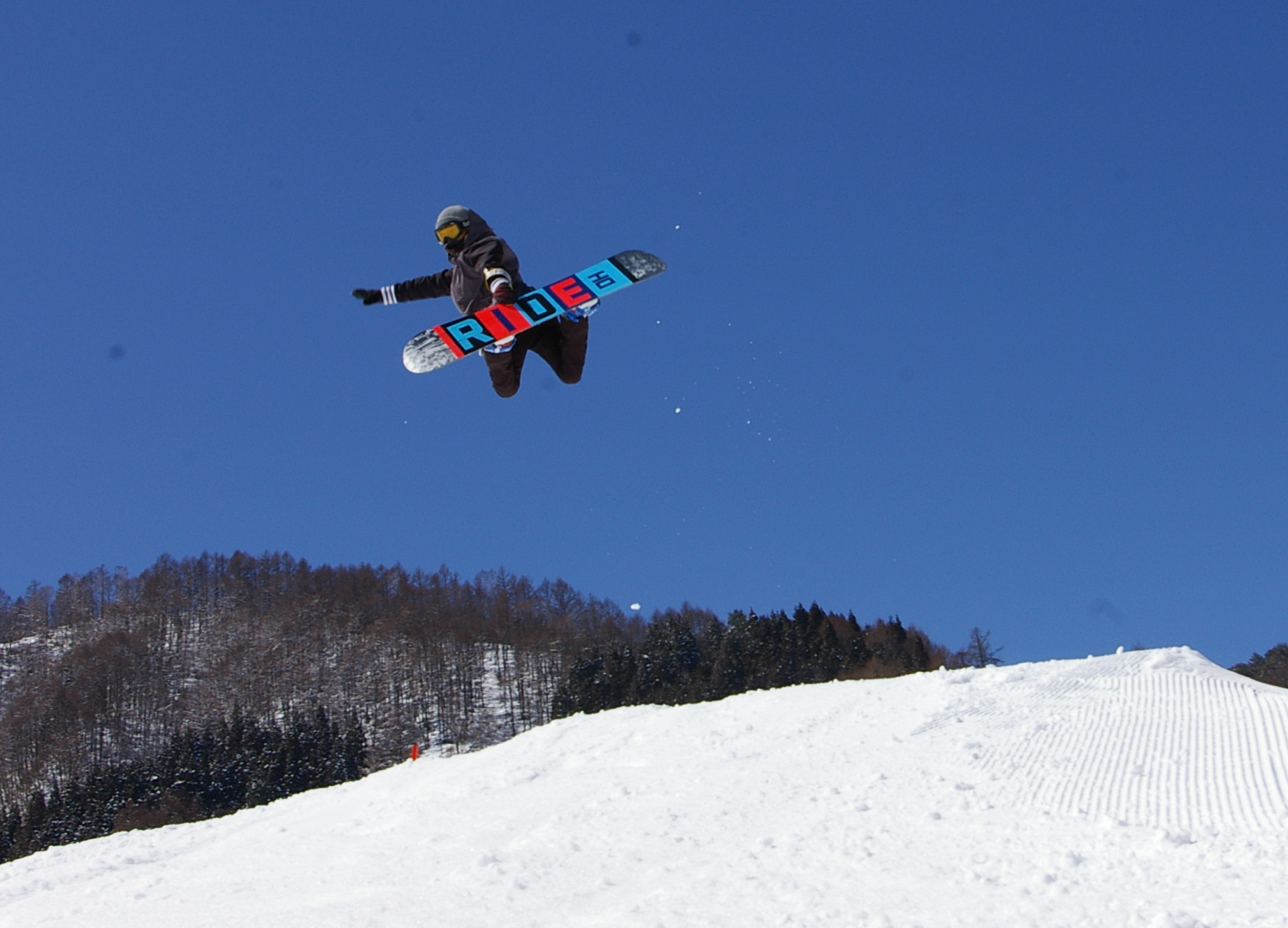 ゲレンデでは、初心者でも挑戦しやすいキッカーなど、パークアイテムがそろっています。